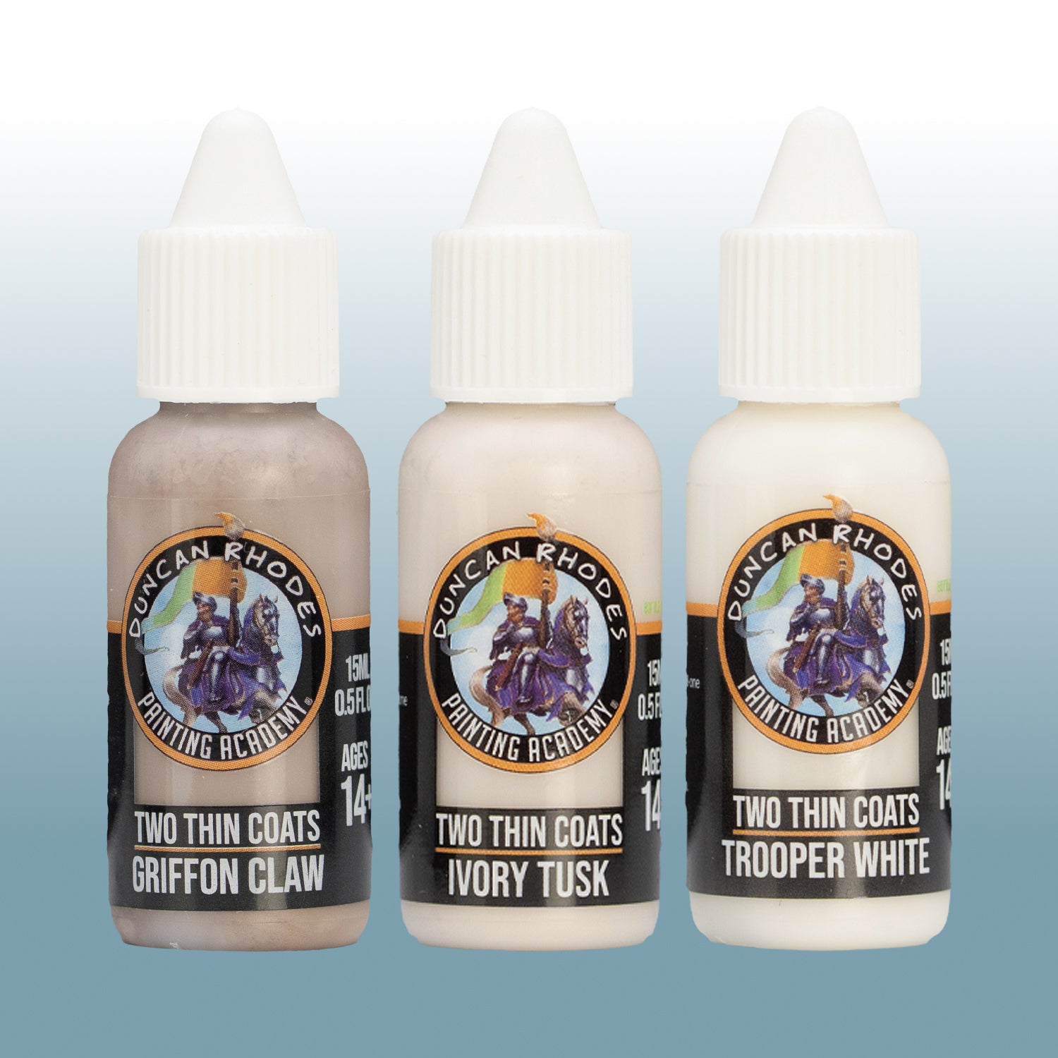 Each Triad comes as a set of three Two Thin Coats paints designed to transition the colours seamlessly from Shadow- Midtone - Highlight.